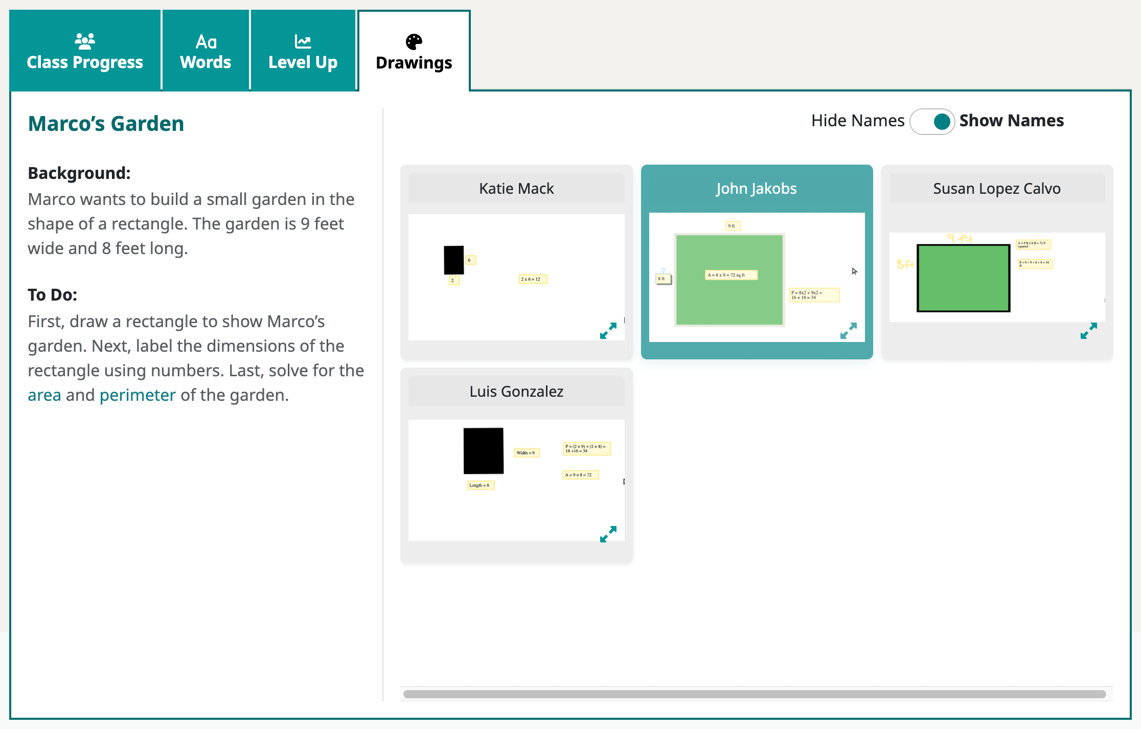 - Teachers may also decide whether to show or hide student names.
